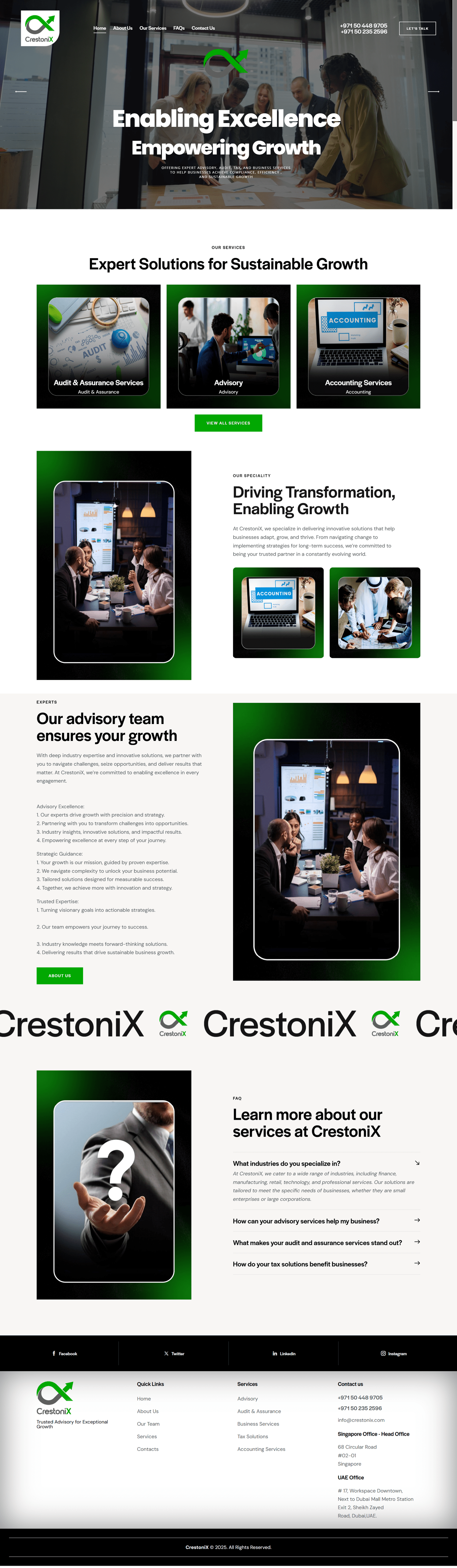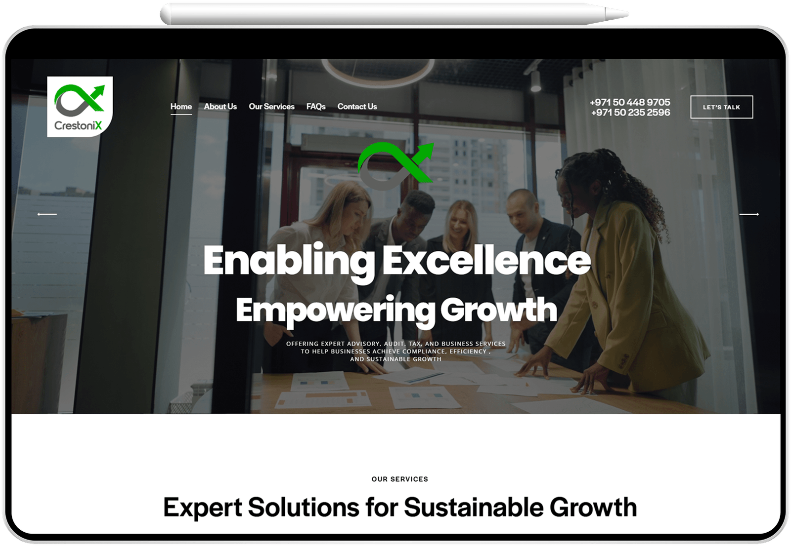 ​CrestoniX is a professional services firm specializing in advisory, audit, tax, and business services, catering to clients across the UK, USA, KSA, Canada, and UAE. Their mission is to empower businesses to adapt, grow, and thrive by delivering innovative solutions tailored to each client’s unique needs.​